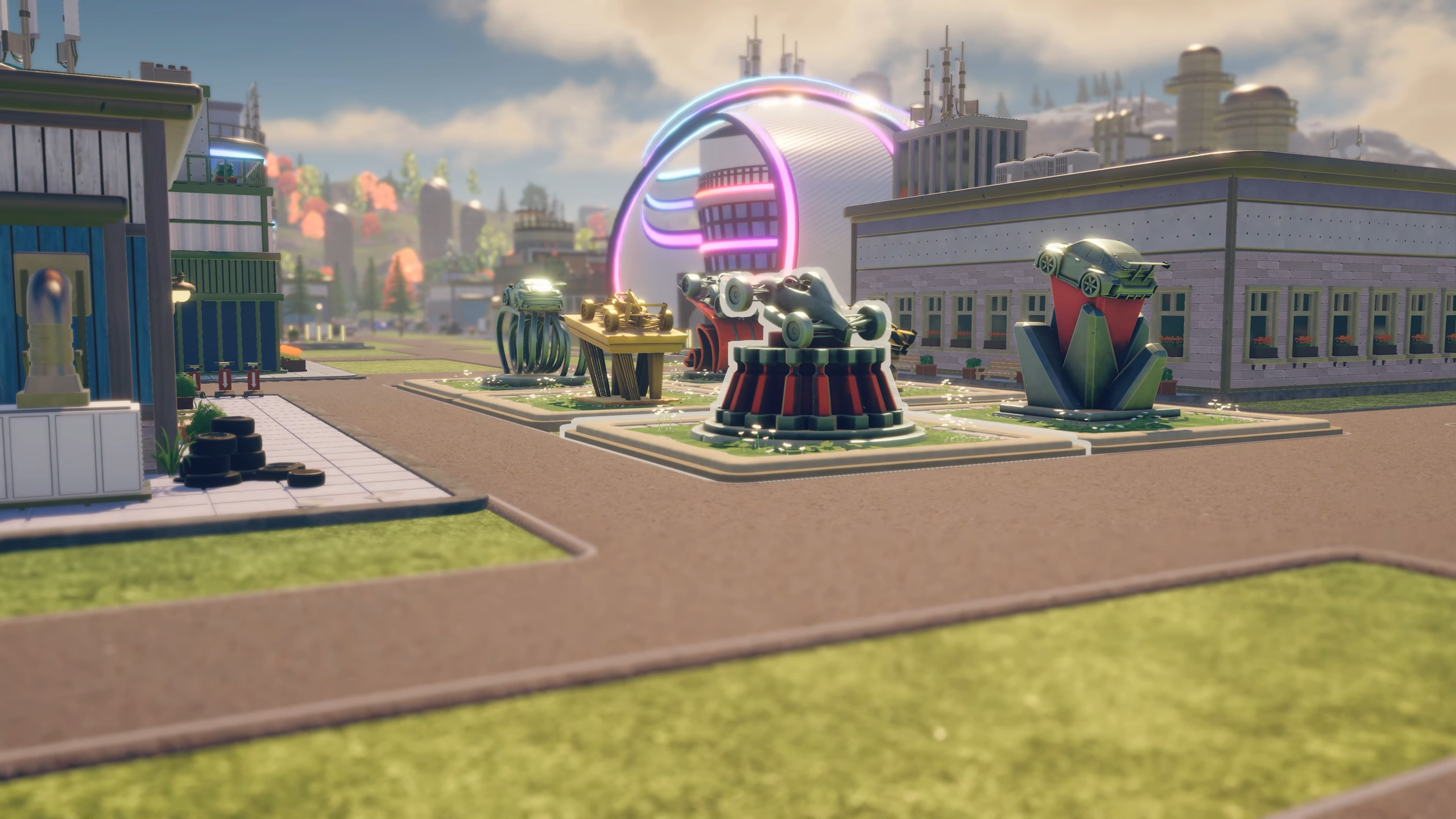 Además, existe la posibilidad de dar a cada edificio un diseño que refleje la identidad de la escudería… e incluso personalizar el campus en su conjunto. En concreto, se puede modificar la disposición del campus y hasta la topografía del terreno; se pueden añadir elementos decorativos como vegetación, entre otros. En suma, la organización espacial no está fijada de antemano.